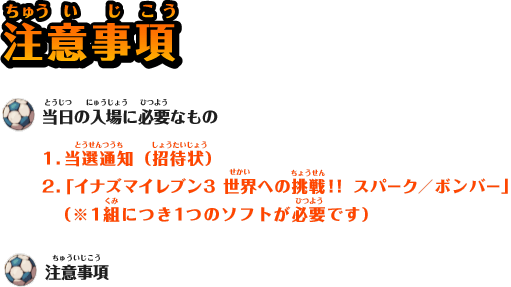 - 当日は当選者に送付される招待状と「イナズマイレブン3