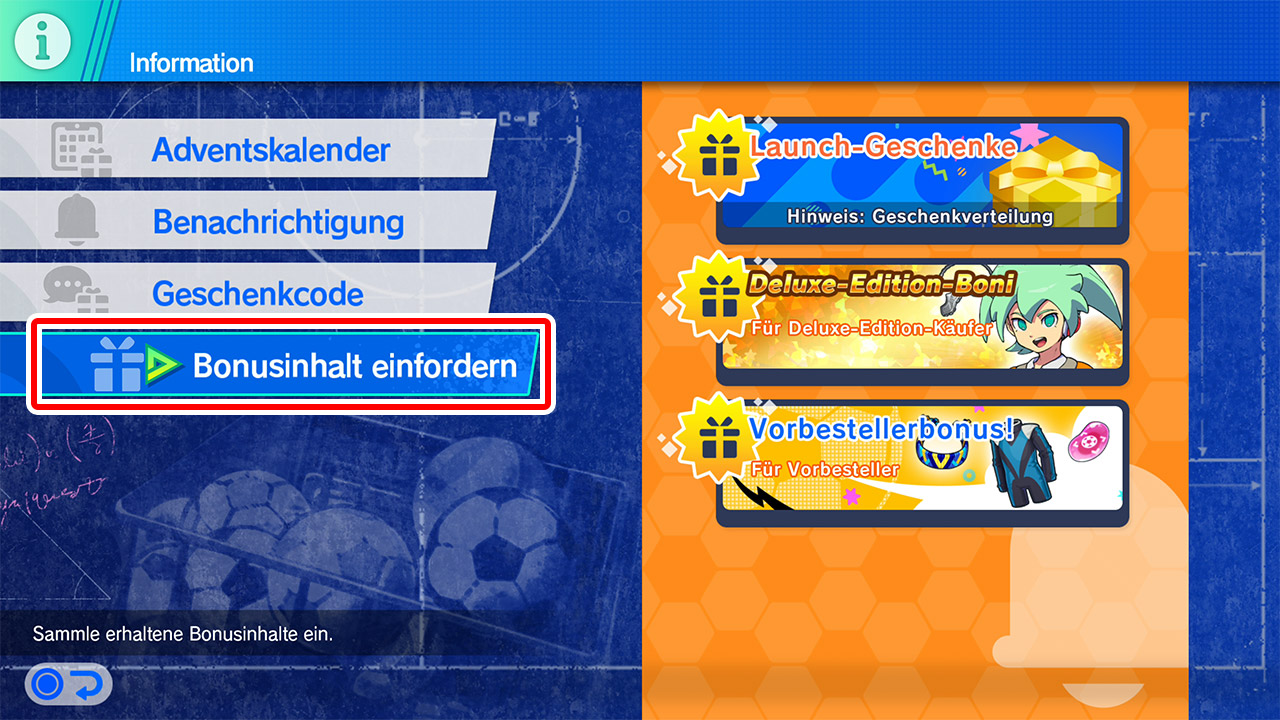 Nach erfolgreicher Eingabe wird der Bonusinhalt dem Menü „Bonusinhalt einfordern“ hinzugefügt und kann dort abgeholt werden.