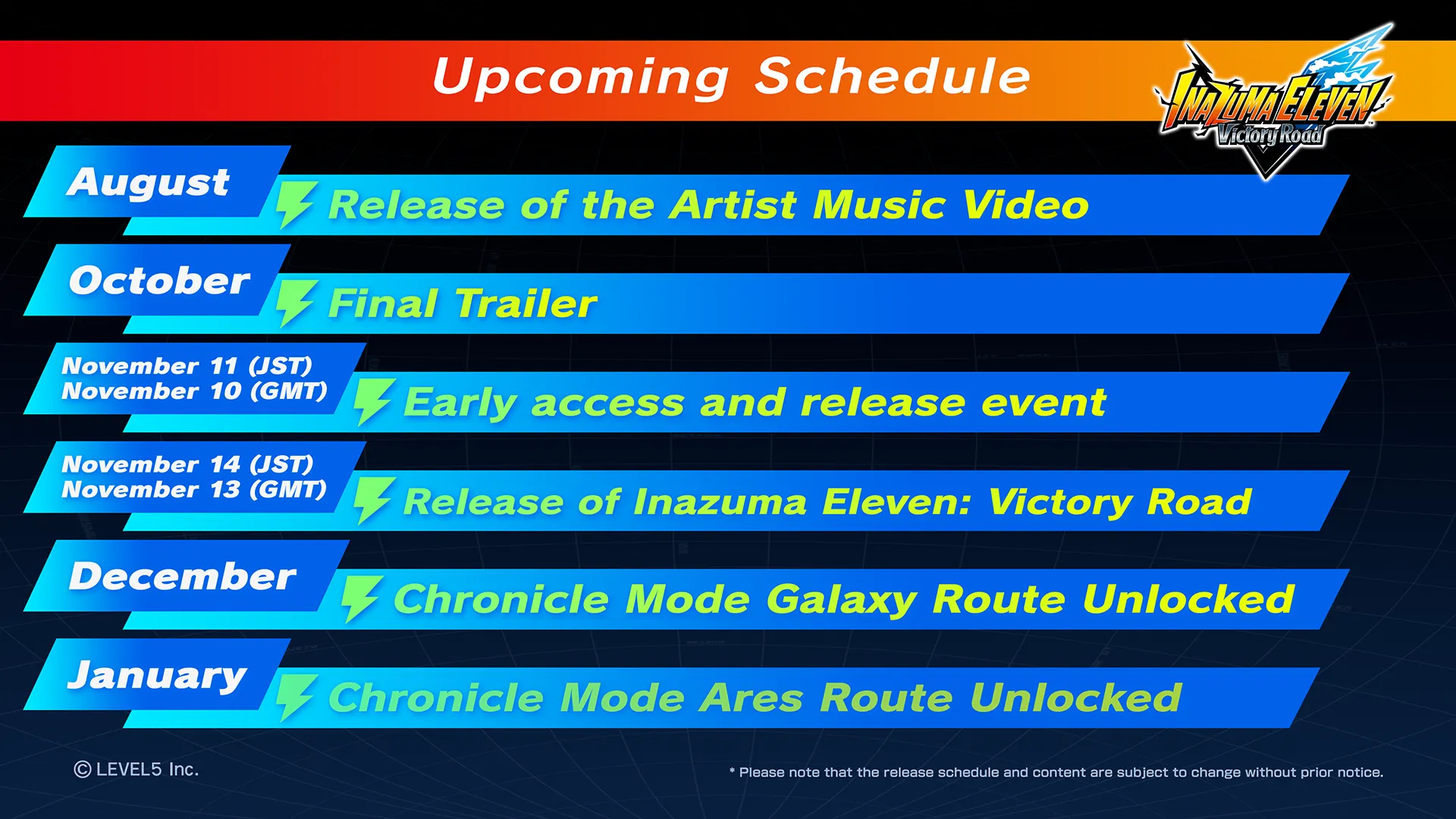 Global Release Schedule Revealed! The release of Inazuma Eleven: Victory Road is just around the corner!