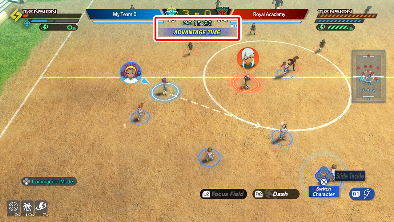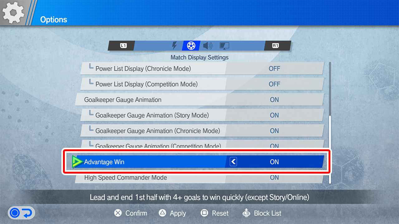 If you take a three-goal lead in the first half, Advantage Time will activate, and the match time in the second half will be reduced by half.