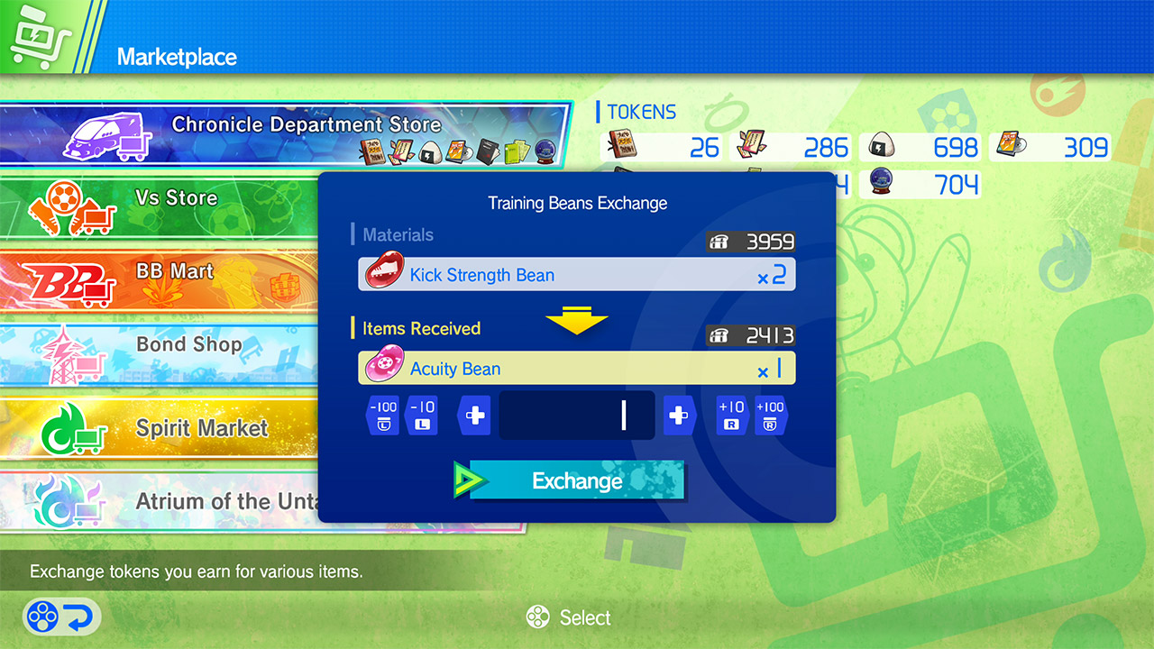 *You can exchange 2 Training Beans of one type for 1 of another type.