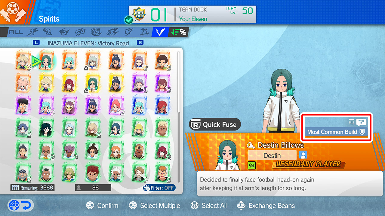 ● The Spirit Menu and Player Universe now show each character's most likely Build.