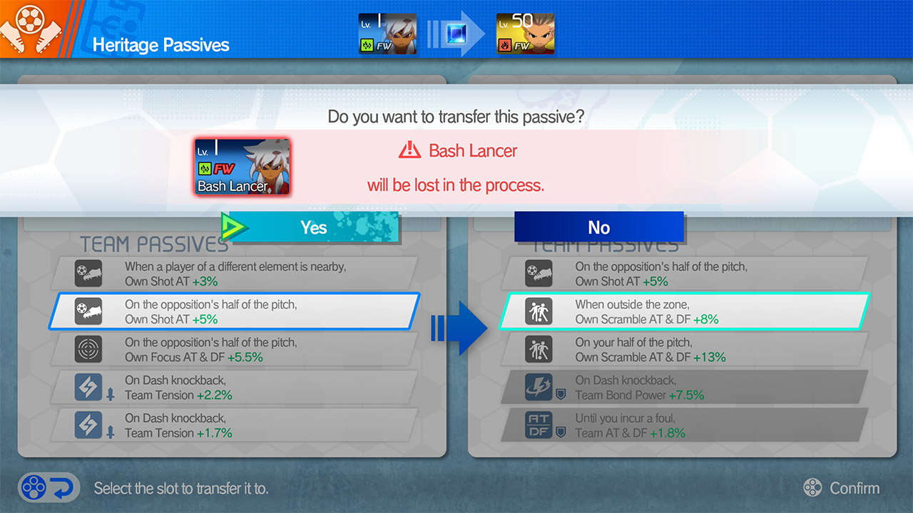 You can customize up to three passive slots this way per character.- *Story characters, Avatars, and other non-retirable characters cannot be used as sources.