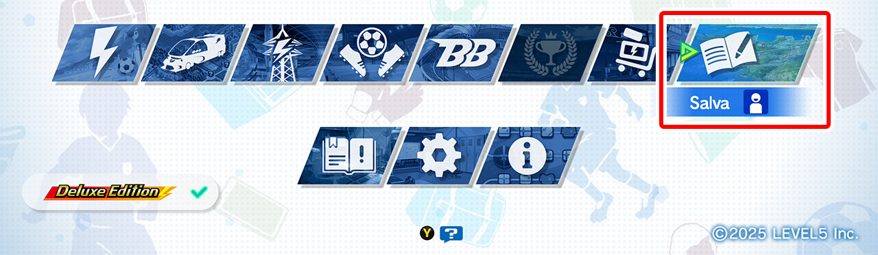 Avvia "INAZUMA ELEVEN: Victory Road" sulla piattaforma dove vuoi caricare i dati del Cross Save e seleziona "Salva" dal menu principale.