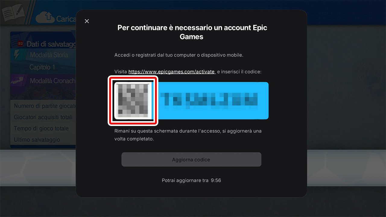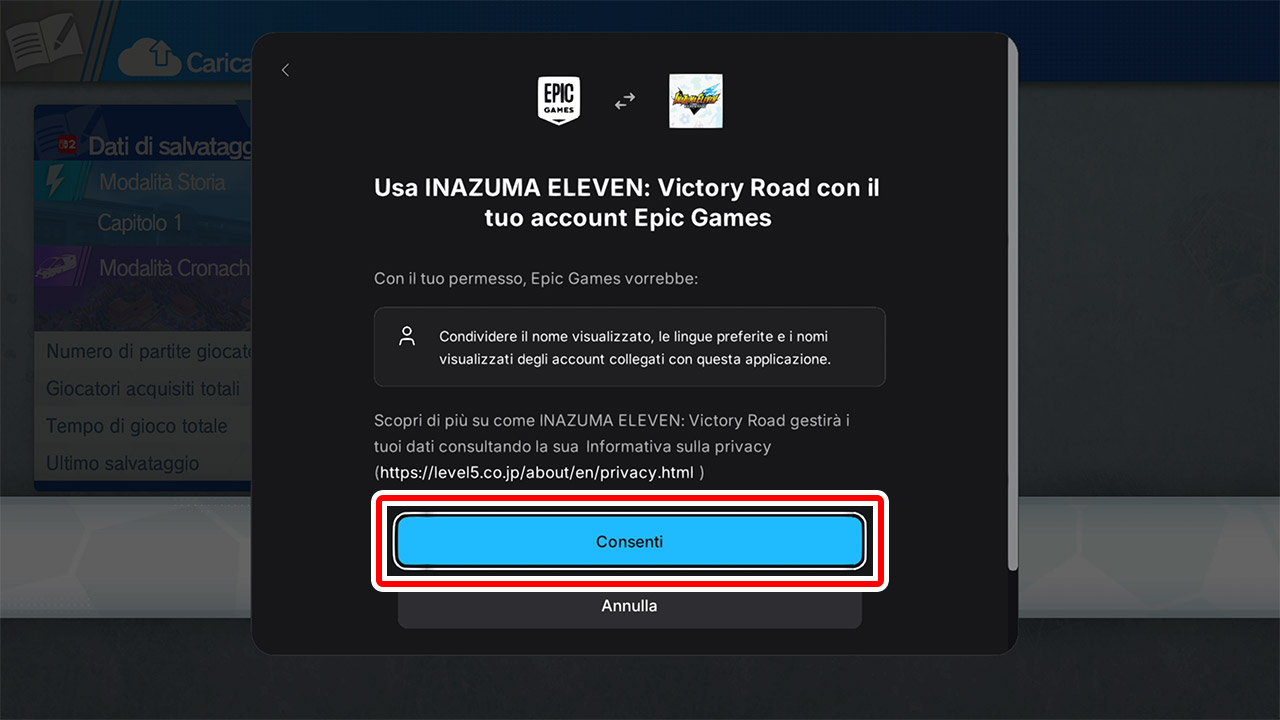 Dopo il collegamento, nella schermata con la dicitura "Carica i dati di salvataggio sul Cross Save", tieni premuto il pulsante per selezionare "Sì".
